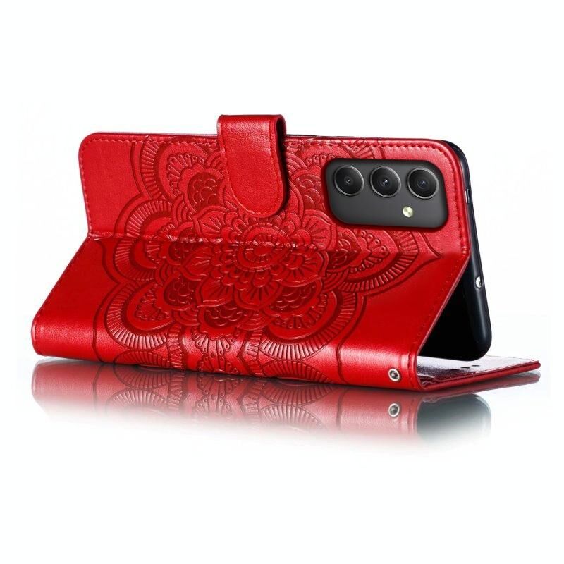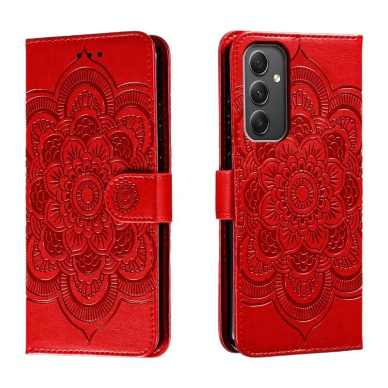 Για Samsung Galaxy A35 5G Sun Mandala ανάγλυφο μοτίβο τηλέφωνο δερμάτινη θήκη (κόκκινο)