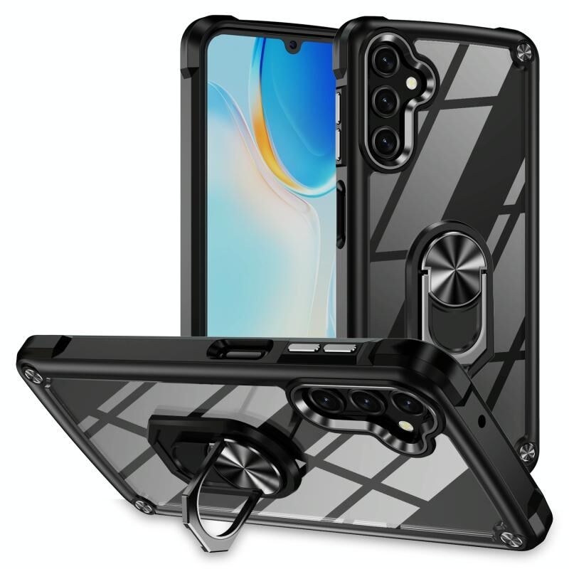 Για το Samsung Galaxy A35 5G TPU + PC φακό προστασίας υπόθεση τηλεφώνου με θήκη δαχτυλίδι (μαύρο)