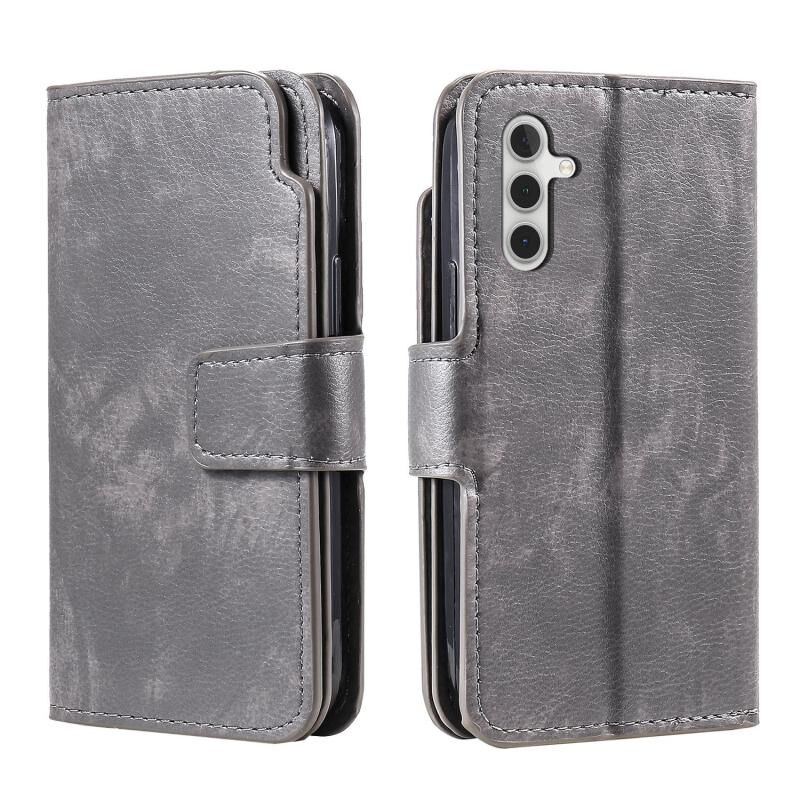 Για Samsung Galaxy A35 5G Tri-Fold 9-κάρτα πορτοφόλια δερμάτινη θήκη τηλεφώνου (Γκρι)
