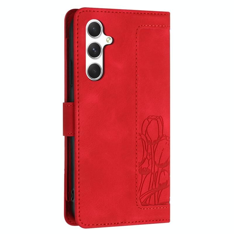 Θήκη τηλεφώνου δερμάτινη ανάγλυφη με τουλίπες και λουρί για Samsung Galaxy A35 5G (Ροζ)
