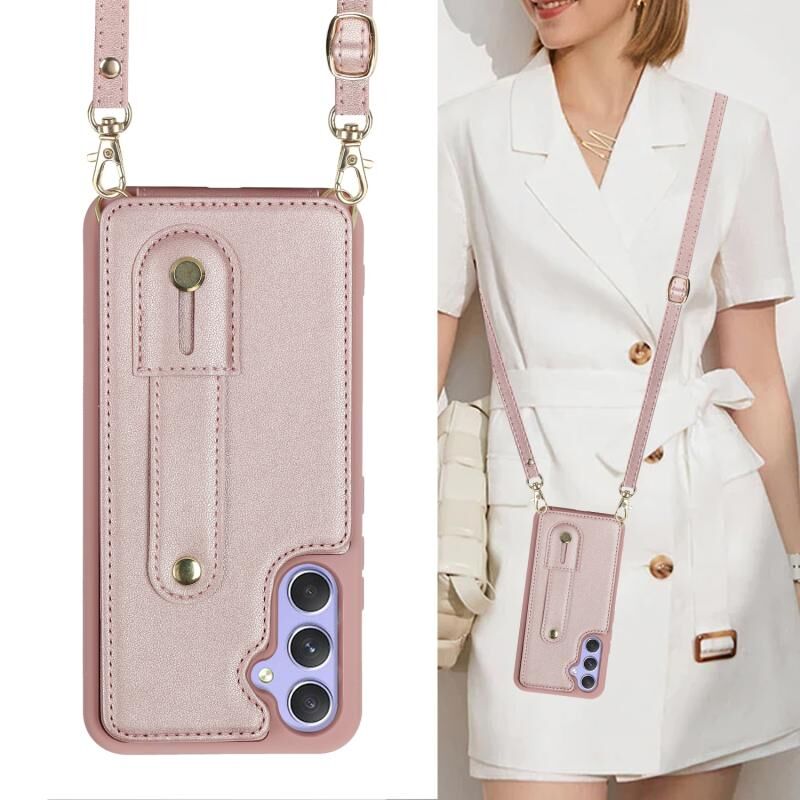 Για Samsung Galaxy A35 5G Βραχιόλι Θήκη Πορτοφολιού με Κάθετη Αναδίπλωση και Κάλυμμα για Κινητό με Μακρύ Λουρί (Μαύρο)