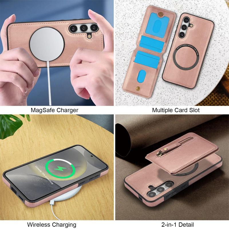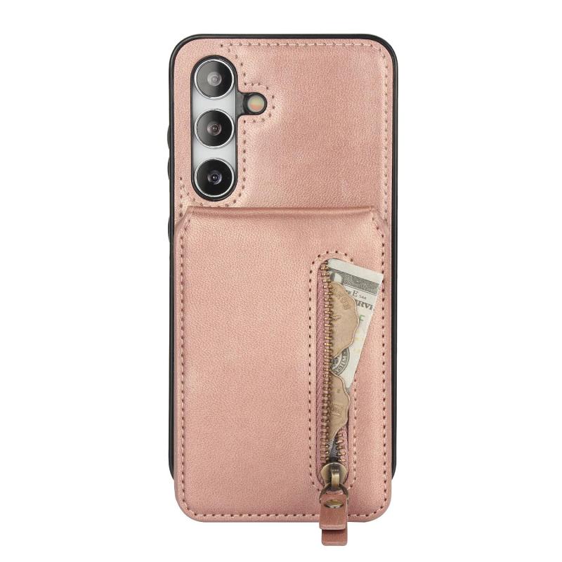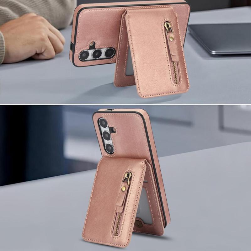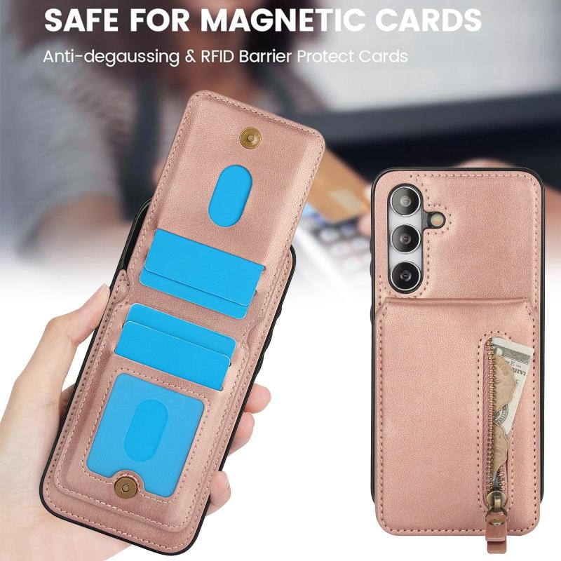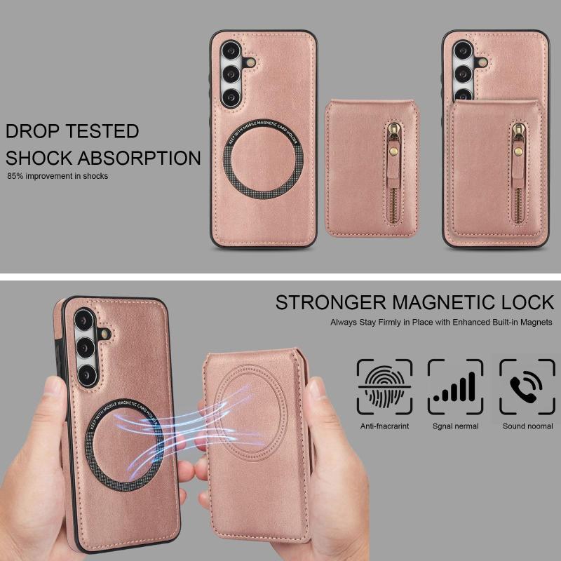 For Samsung Galaxy A35 5G Zipper Wallet Split MagSafe Leather Back Phone Case(Rose Gold)