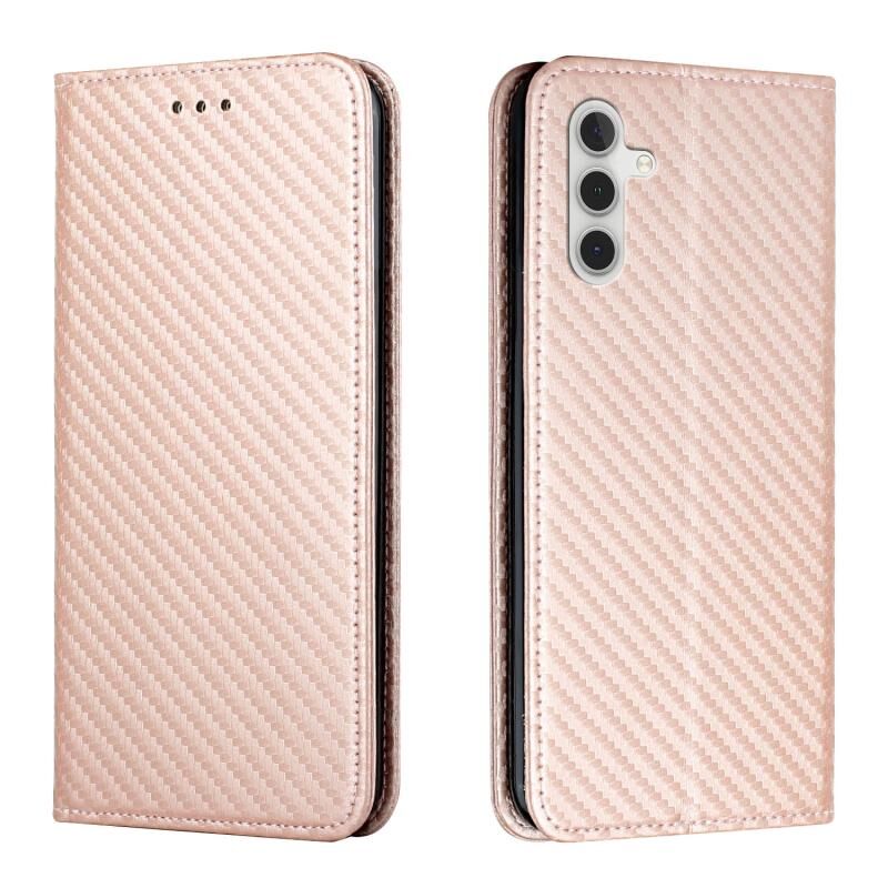 Για Samsung Galaxy A35 Carbon Fiber υφή Flip κάτοχος δερμάτινη θήκη τηλεφώνου (Rose Gold)
