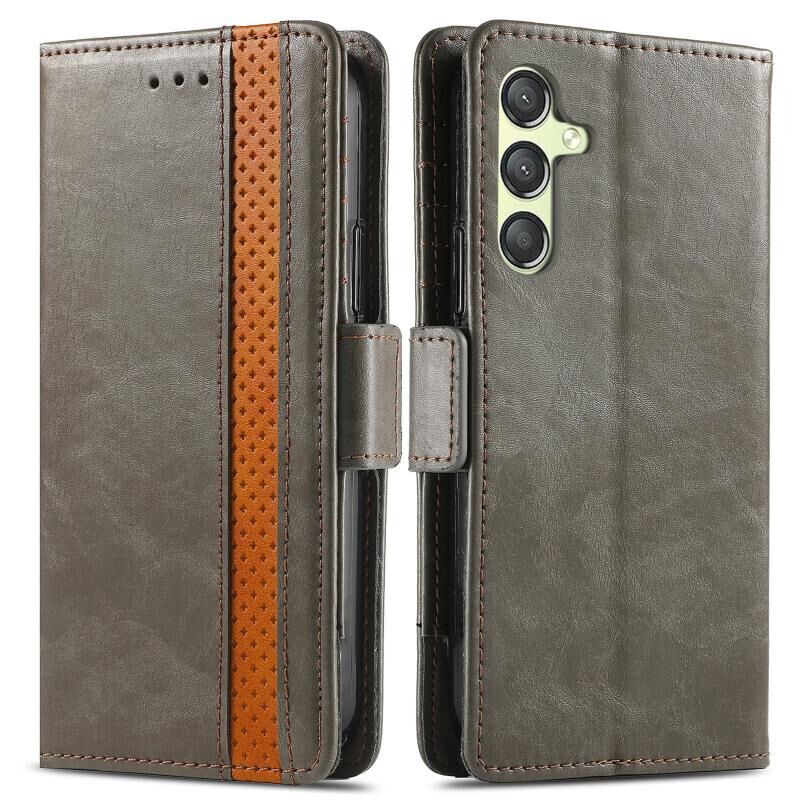 Για Samsung Galaxy A35 CaseNeo Splicing Διπλή μαγνητική πόρπη δερμάτινη θήκη τηλεφώνου (γκρι)