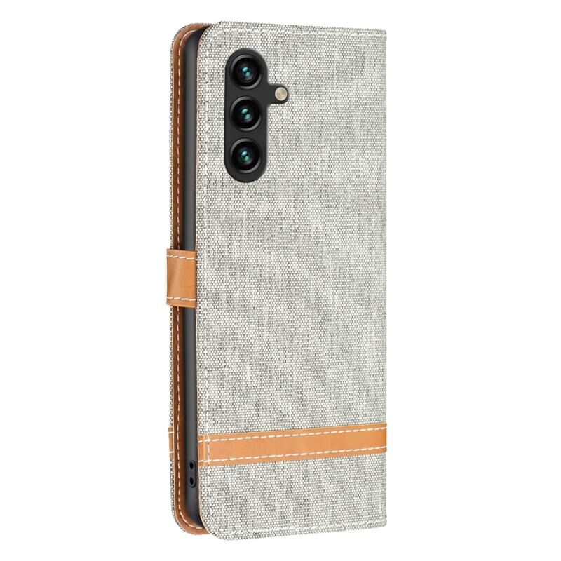 Για Samsung Galaxy A35 Color Block Denim Texture Δερμάτινη θήκη τηλεφώνου (Γκρι)