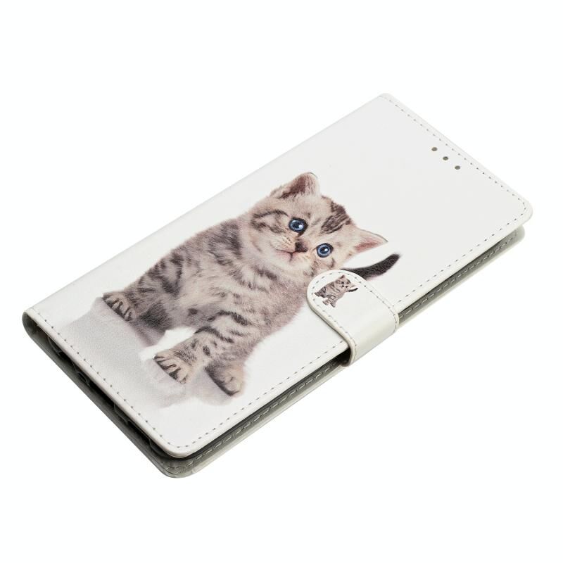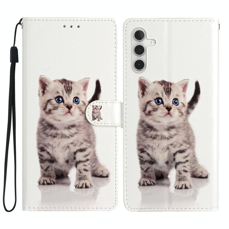 Θήκη τηλεφώνου Samsung Galaxy A35 από δέρμα με έγχρωμο σχέδιο (Μικρή ριγέ γάτα)