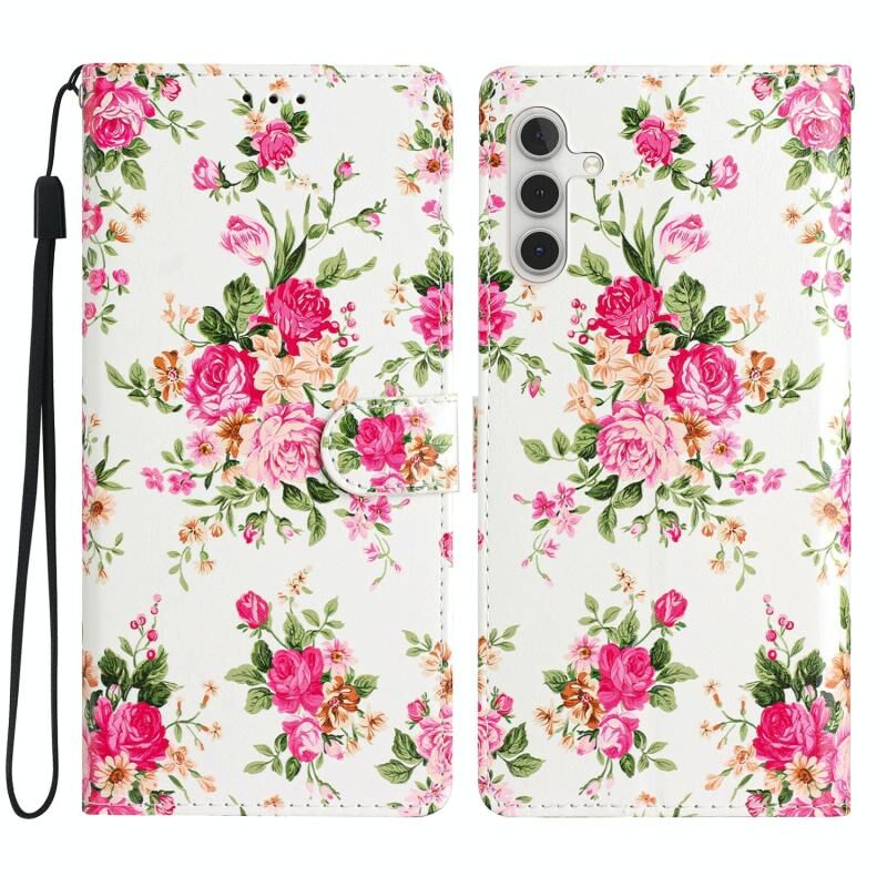 Θήκη τηλεφώνου Samsung Galaxy A35 από δέρμα με έγχρωμο σχέδιο (Παιώνιες)