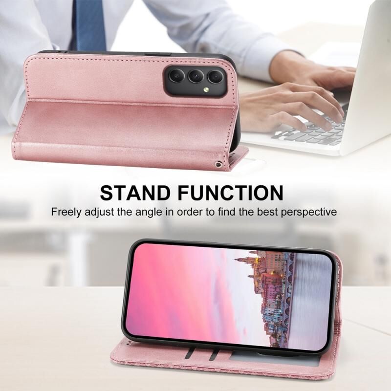 Για Samsung Galaxy A35 Cubic Grid Calf υφή μαγνητική δερμάτινη θήκη τηλεφώνου (ροζ χρυσό)