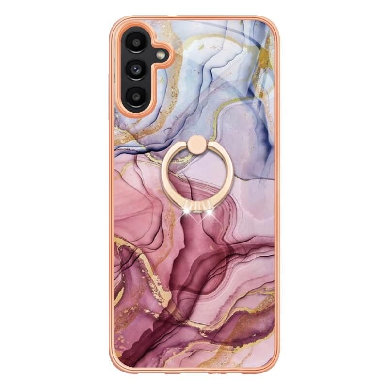 Θήκη τηλεφώνου Samsung Galaxy A35 με επιμετάλλωση, σχέδιο μάρμαρου, διπλής όψης IMD με δαχτυλίδι (Ροζέ Κόκκινο 014)