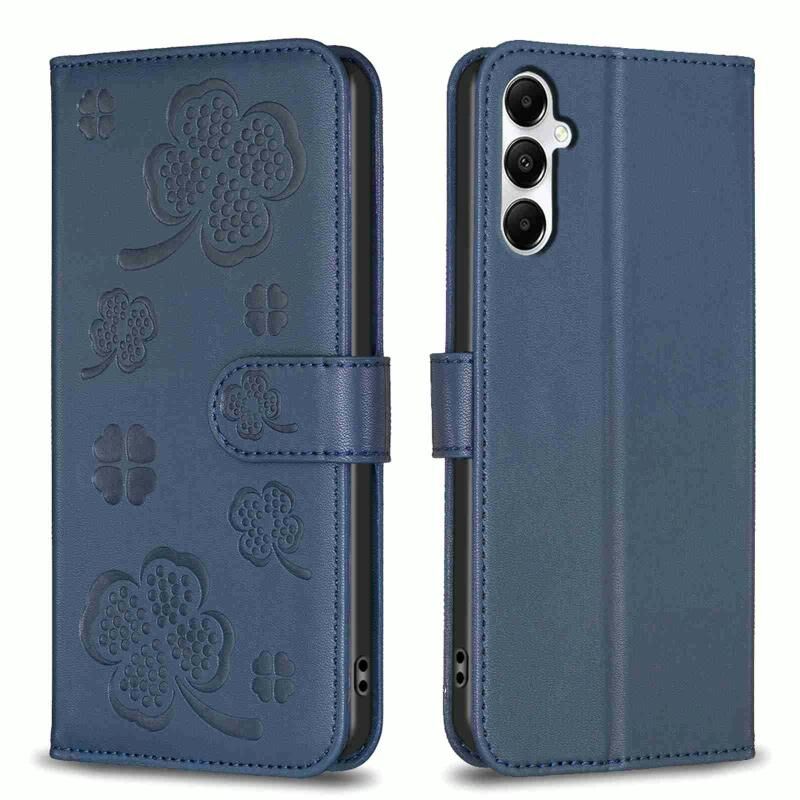 Για Samsung Galaxy A35 τετράφυλλο ανάγλυφο δέρμα υπόθεση τηλεφώνου (μπλε)