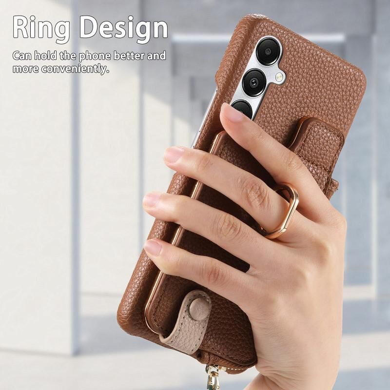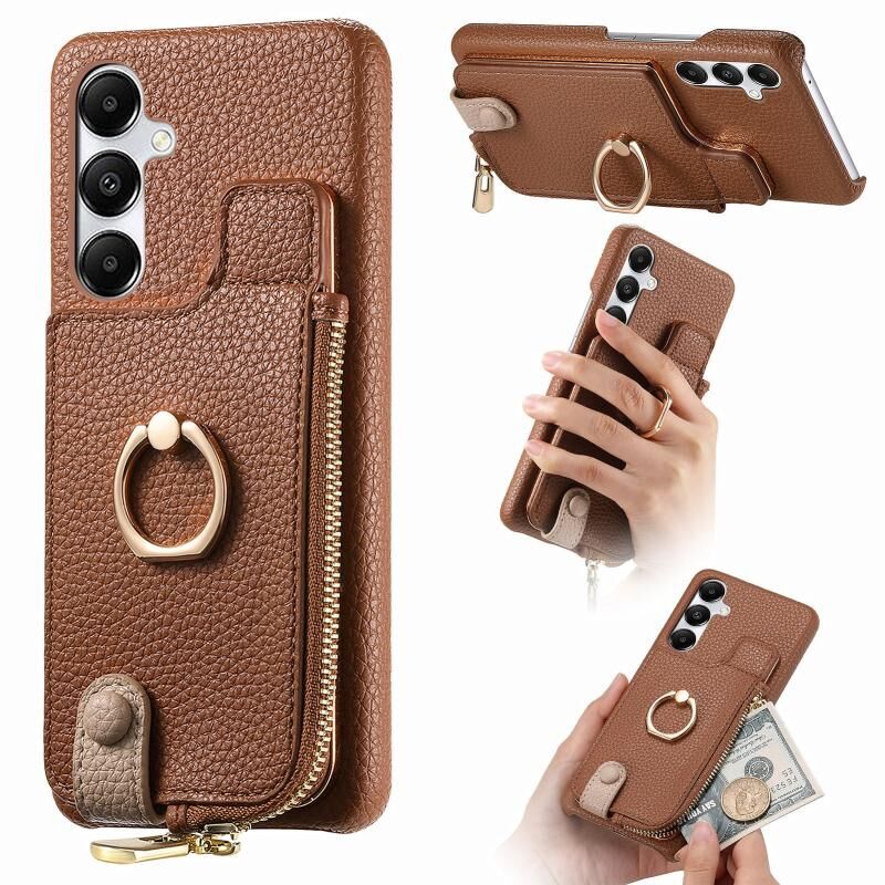 Για Samsung Galaxy A35 Litchi δέρμα λάδι Edge δαχτυλίδι φερμουάρ πορτοφόλι πίσω υπόθεση τηλεφώνου (καφέ)