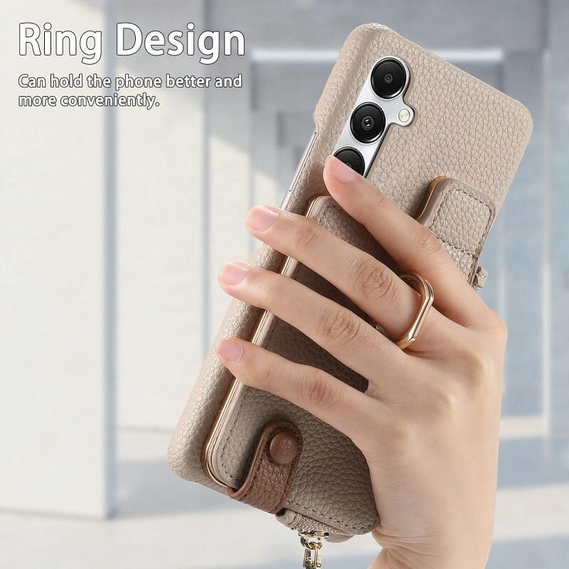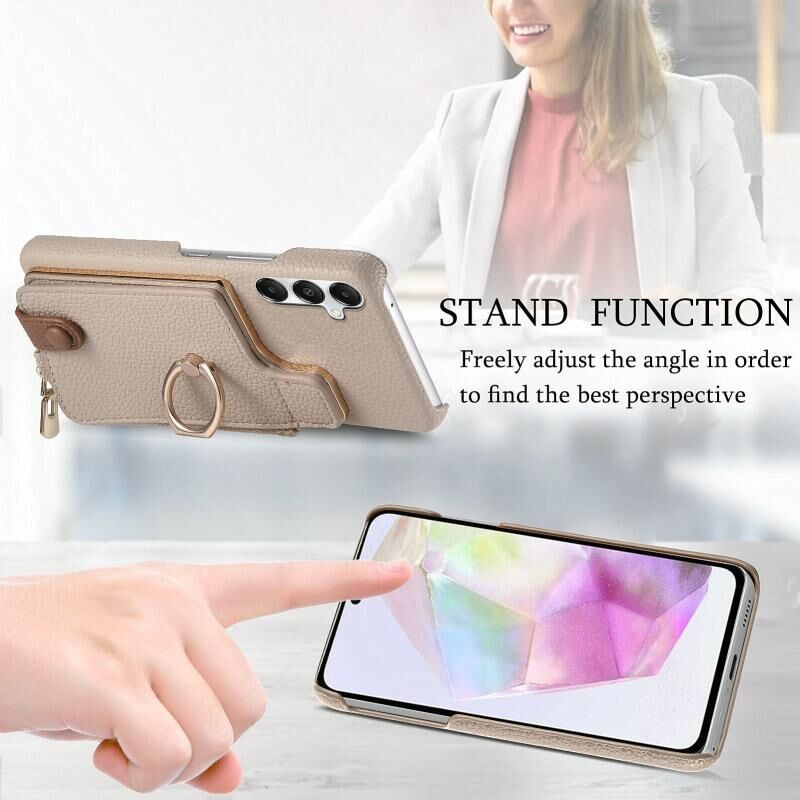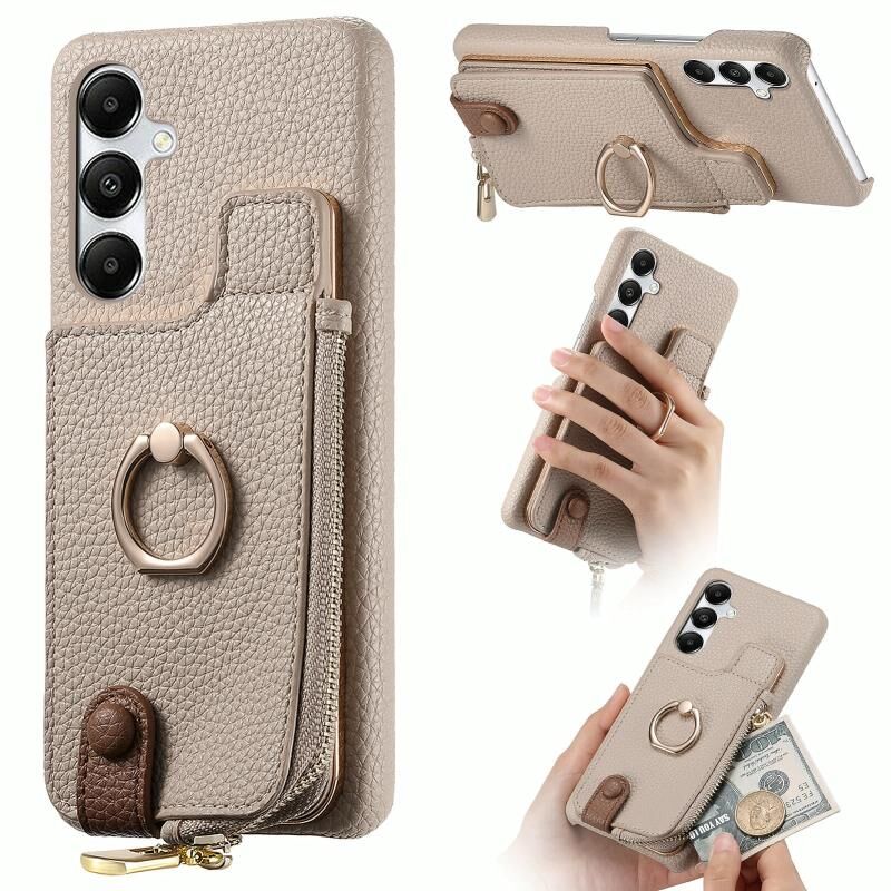 Για Samsung Galaxy A35 Litchi δέρμα λάδι Edge δαχτυλίδι φερμουάρ πορτοφόλι πίσω υπόθεση τηλεφώνου (λευκό)