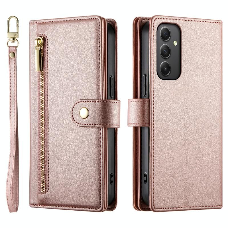 Για Samsung Galaxy A35 Nine Card-slot φερμουάρ τσάντα πορτοφόλι δερμάτινη θήκη τηλεφώνου (ρόζ)