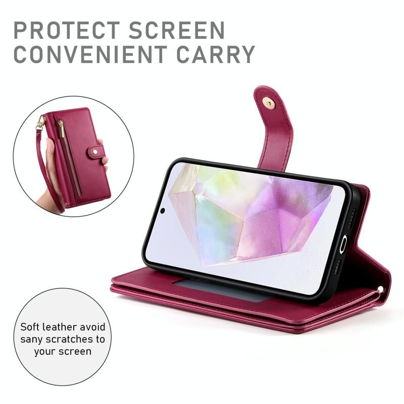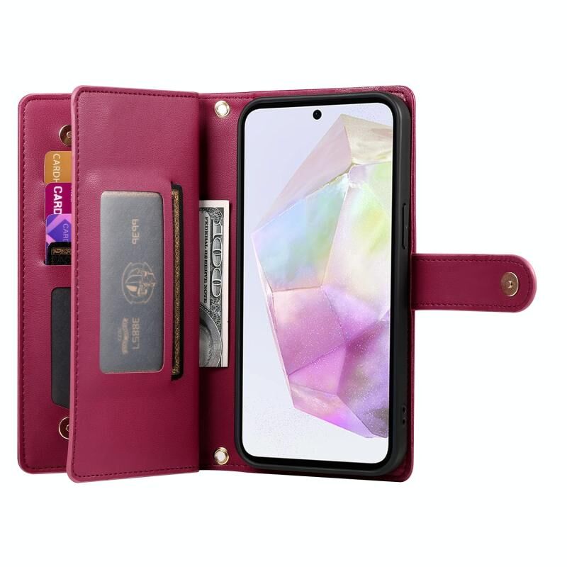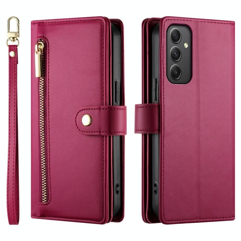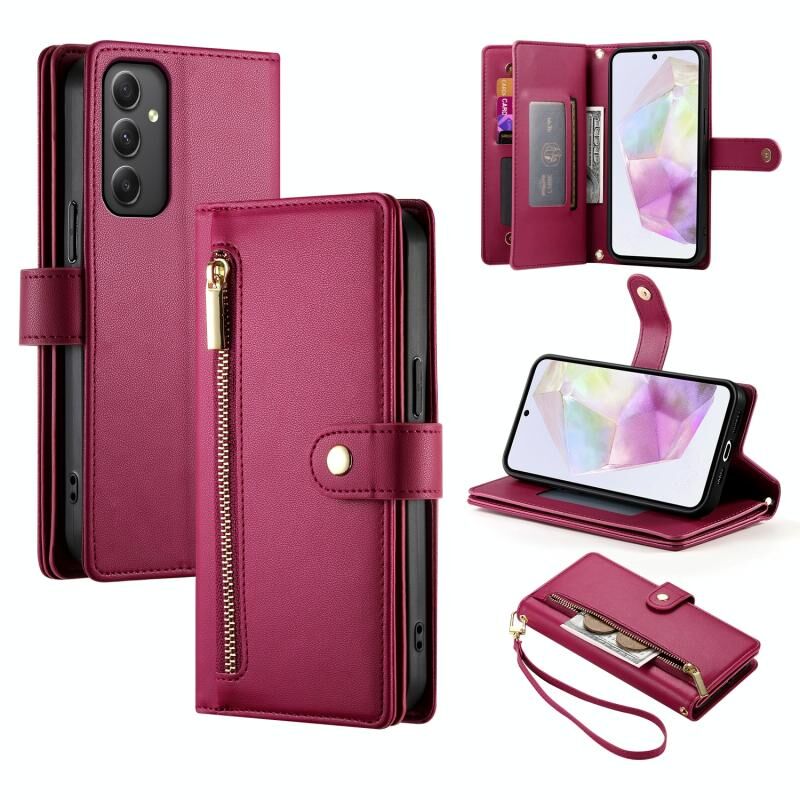 Για Samsung Galaxy A35 Nine Card-slot φερμουάρ πορτοφόλι τσάντα δερμάτινη θήκη τηλεφώνου (Κόκκινο)
