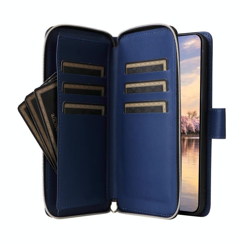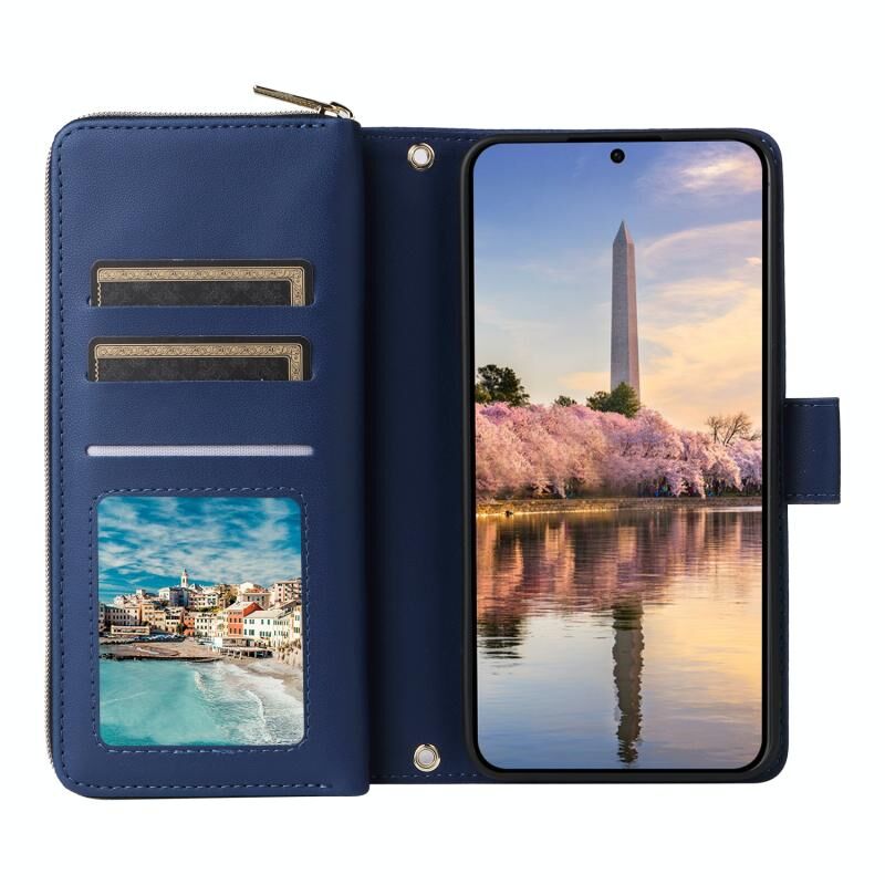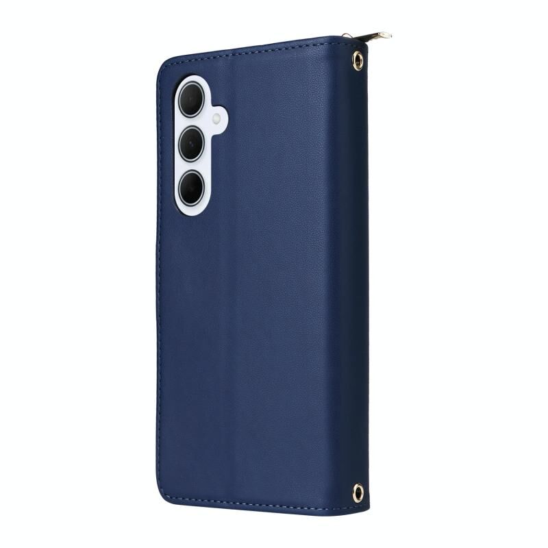 Για Samsung Galaxy A35 εννέα-κάρτα Slots φερμουάρ πορτοφόλι τσάντα δέρμα υπόθεση τηλεφώνου (Μπλε)