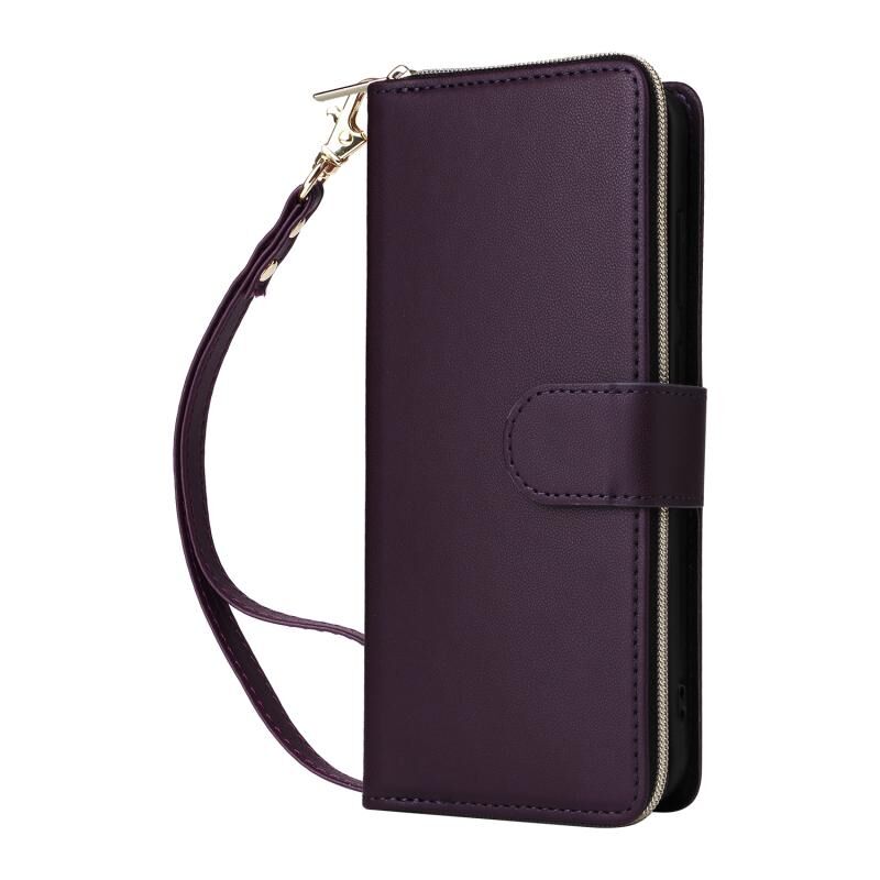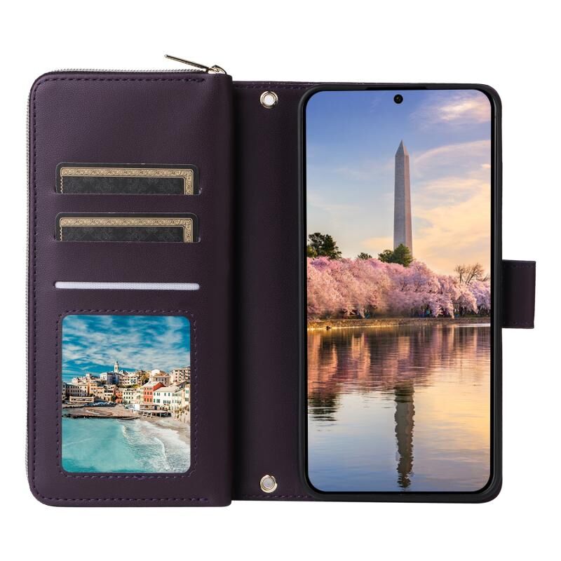 Για Samsung Galaxy A35 Εννέα-κάρτα Slots φερμουάρ τσάντα πορτοφόλι δερμάτινη θήκη τηλεφώνου (σκούρο μωβ)