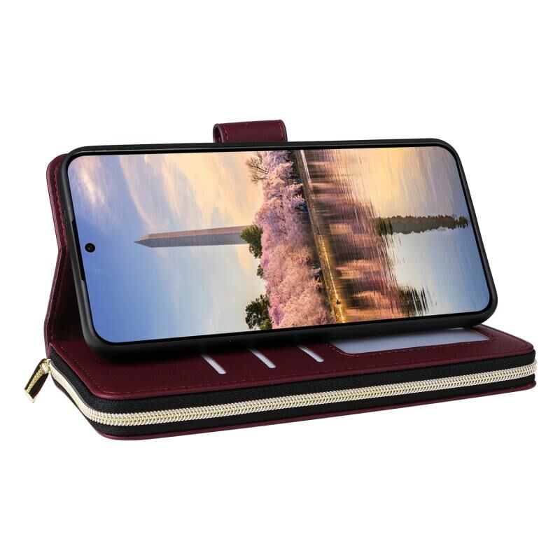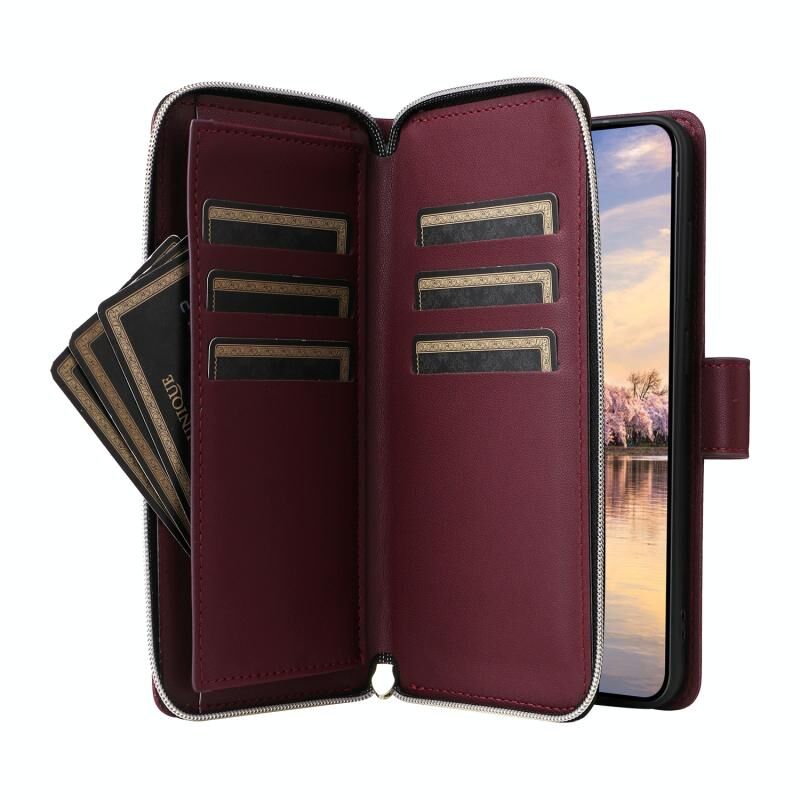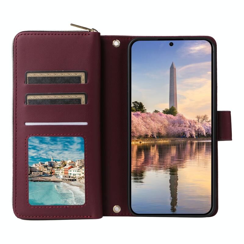 Για Samsung Galaxy A35 Εννέα-κάρτα Slots φερμουάρ τσάντα πορτοφόλι δερμάτινη θήκη τηλεφώνου (κόκκινο κρασί)