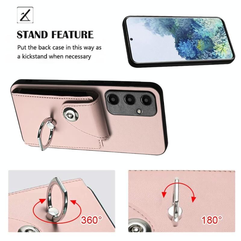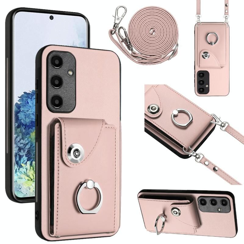 Για Samsung Galaxy A35 Οργανική κάρτα τσάντα τσάντα δαχτυλίδι κάτοχος θήκη τηλεφώνου με μακρύ κορδόνι (ροζ)
