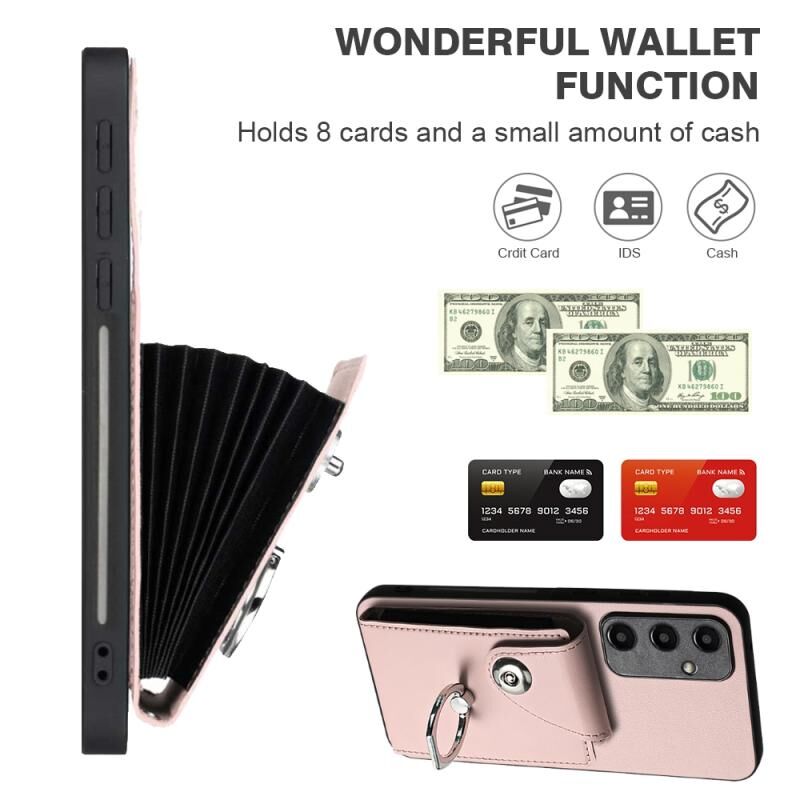 Για Samsung Galaxy A35 Οργανική κάρτα τσάντα τσάντα δαχτυλίδι κάτοχος PU υπόθεση τηλεφώνου με κορδόνι (ροζ)