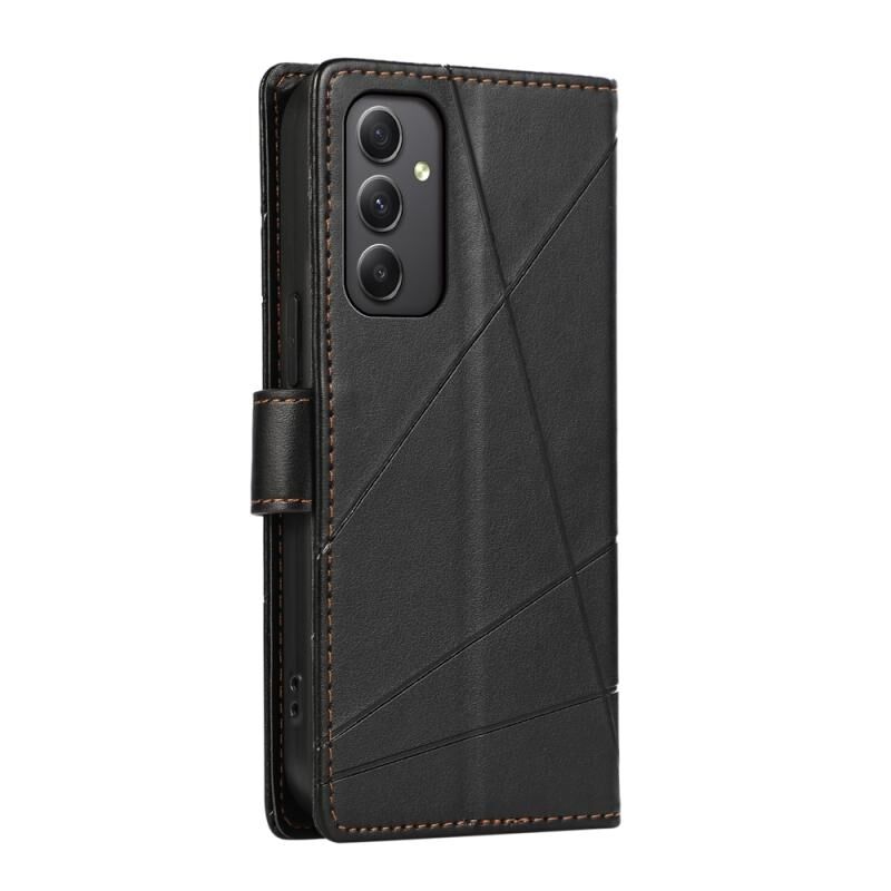Θήκη τηλεφώνου Samsung Galaxy A35 από γνήσιο δέρμα PU με ανάγλυφη υφή και λεπτομέρεια γραμμής (Μαύρο)