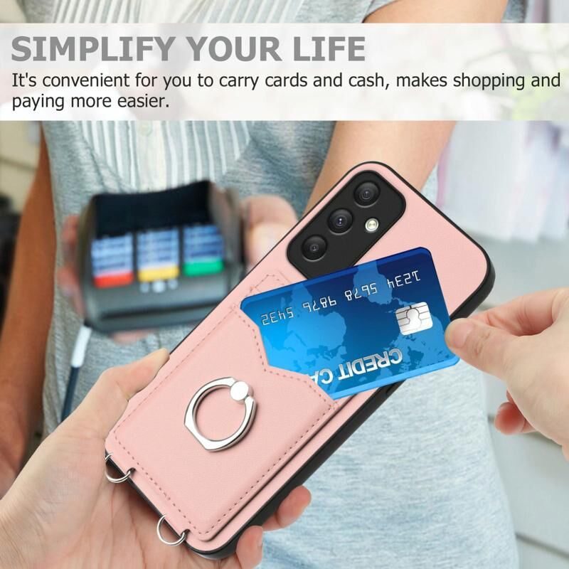Για Samsung Galaxy A35 R20 Δαχτυλίδι Κάτοχος κάρτας θήκη τηλεφώνου (ρόζ)