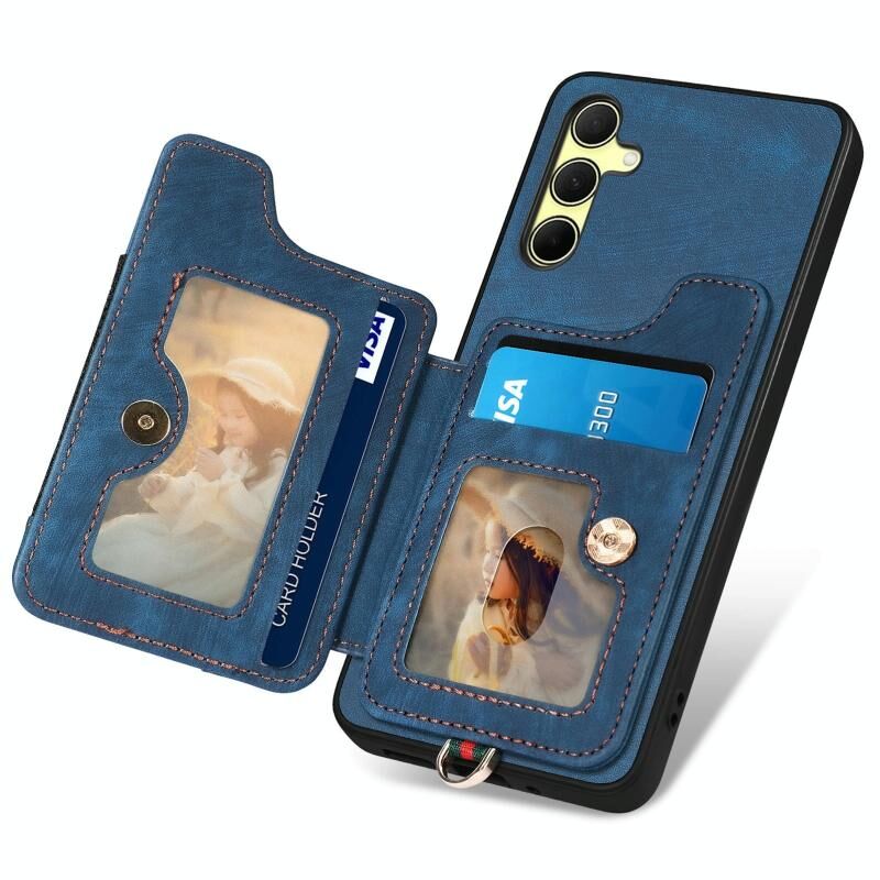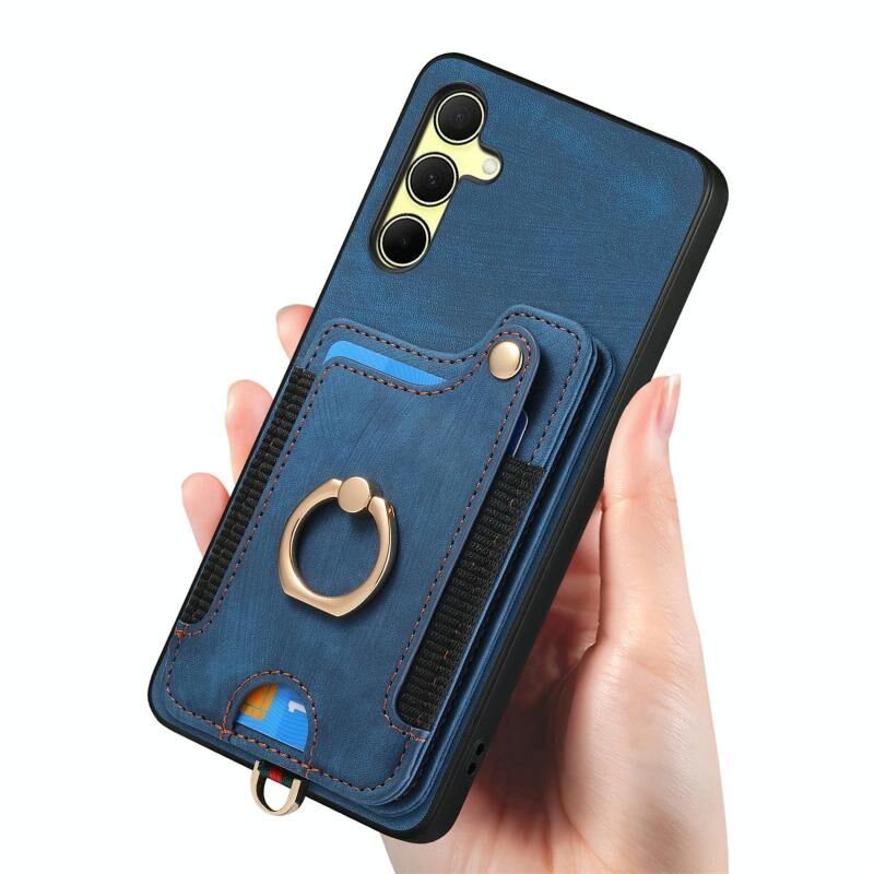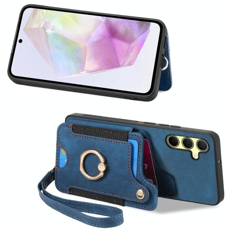 Για Samsung Galaxy A35 Ρετρό δέρμα αίσθηση δαχτυλίδι πολυ-κάρτα πορτοφόλι υπόθεση τηλεφώνου (μπλε)