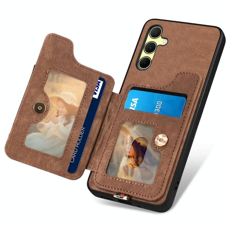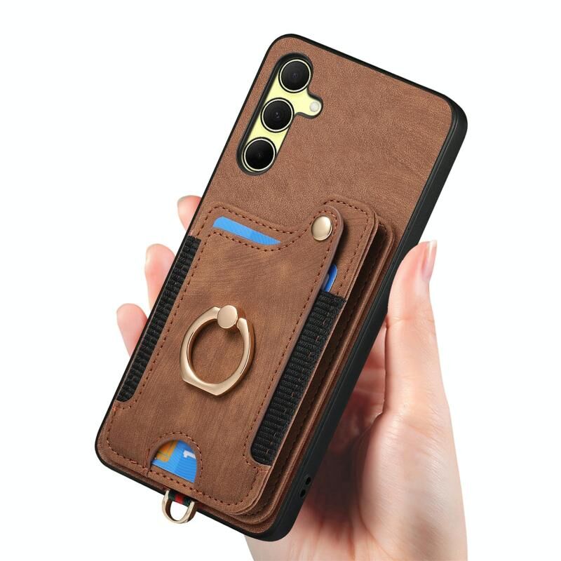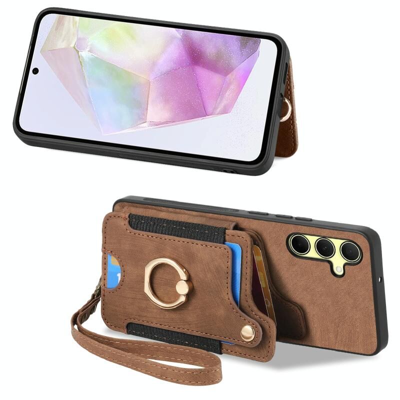 Για Samsung Galaxy A35 Ρετρό δέρμα αίσθηση δαχτυλίδι πολυ-κάρτα πορτοφόλι υπόθεση τηλεφώνου (καφέ)