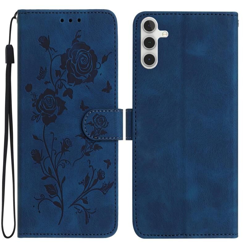 For Samsung Galaxy A35 Rose Flower Embossing Pattern Leather Phone Case(Dark Blue)