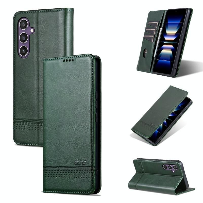 Για Samsung Galaxy A36 5G AZNS Μαγνητικό μοσχάρι υφή Flip δέρμα τηλέφωνο υπόθεση (σκούρο πράσινο) (AZNS)