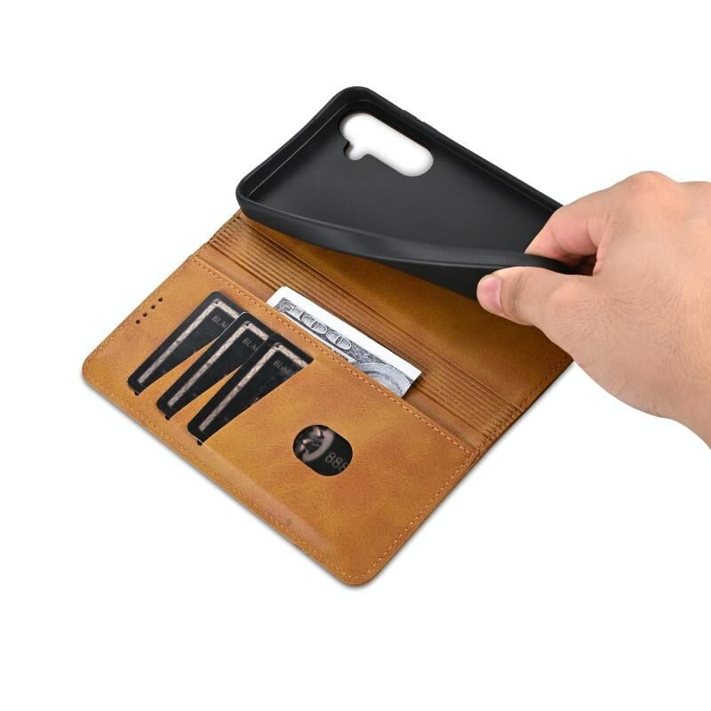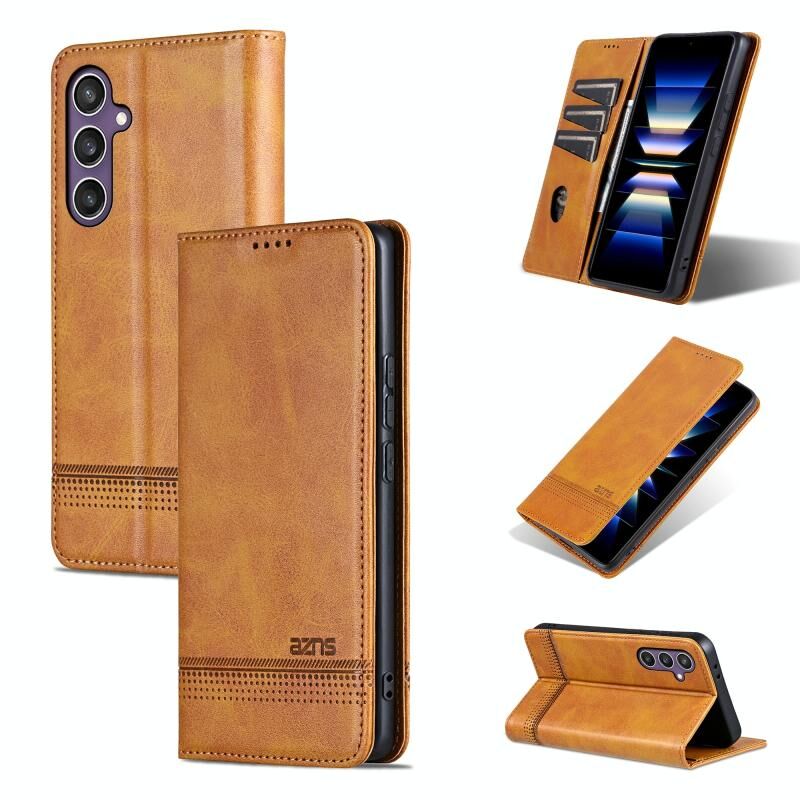 Για Samsung Galaxy A36 5G AZNS Μαγνητικό μοσχάρι υφή Flip δέρμα τηλέφωνο υπόθεση (ανοιχτό καφέ) (AZNS)