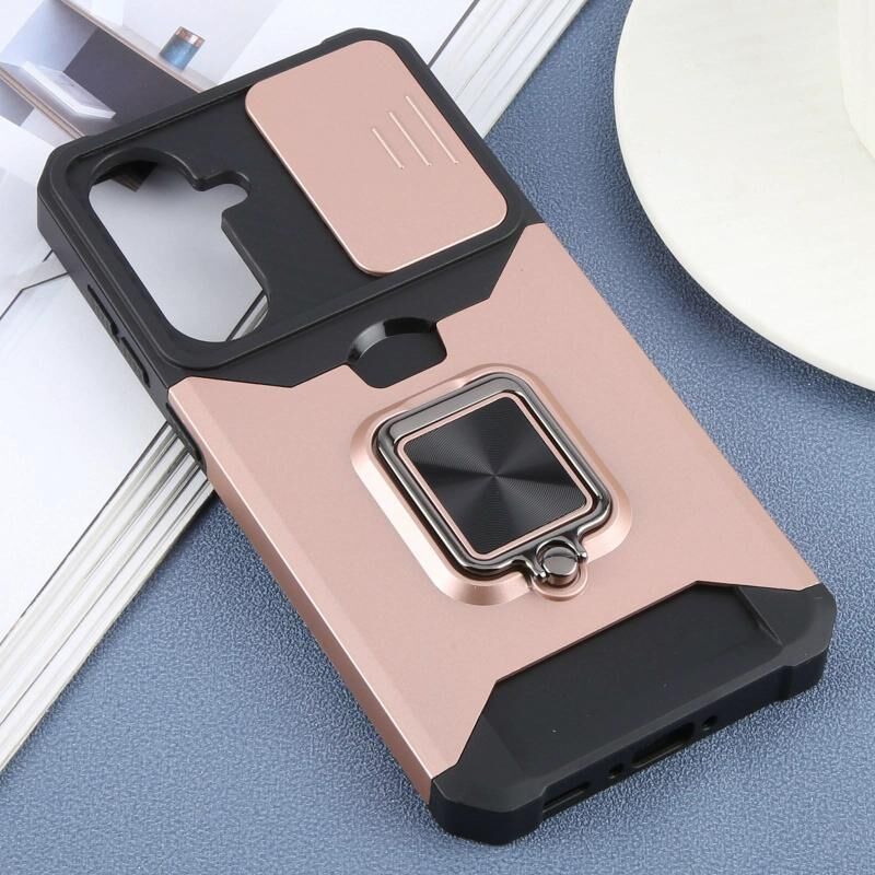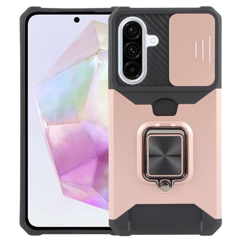 Θήκη κινητού τηλεφώνου Samsung Galaxy A36 5G, Υβριδική από PC και TPU με προστασία κάμερας και θήκη για κάρτες (Μπλε)
