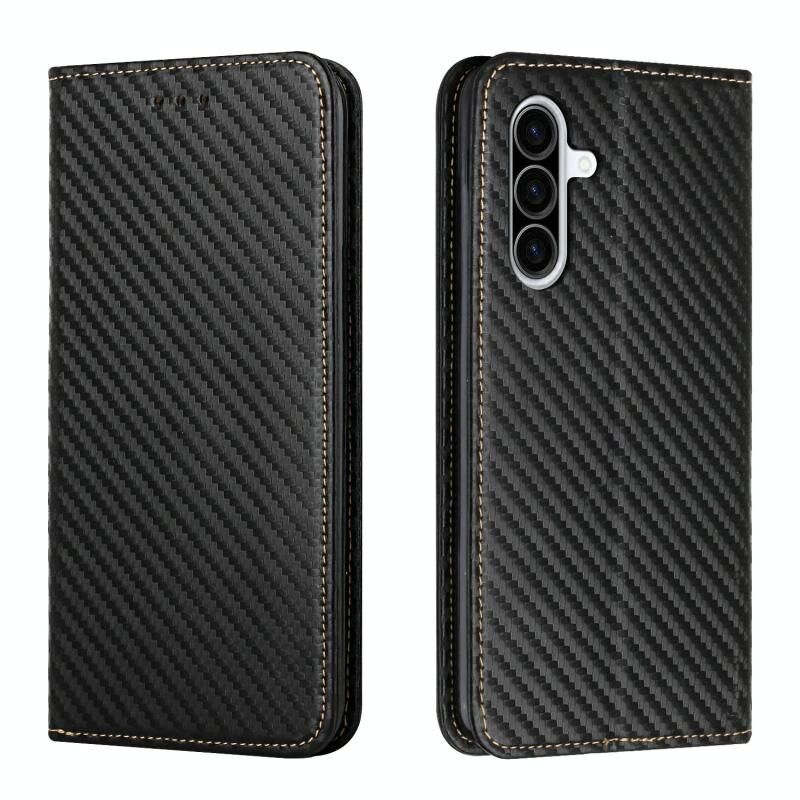 Θήκη τηλεφώνου Samsung Galaxy A36 5G από δέρμα με μαγνητικό κλείσιμο και υφή ανθρακονημάτων (Μαύρο)