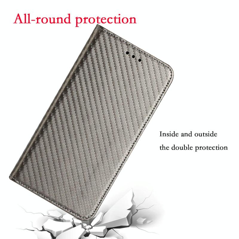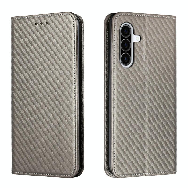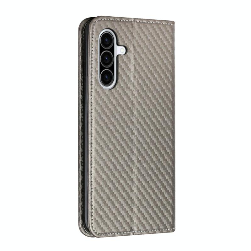 Θήκη τηλεφώνου Samsung Galaxy A36 5G από δέρμα με μαγνητικό κλείσιμο και υφή ανθρακονημάτων (Μαύρο)