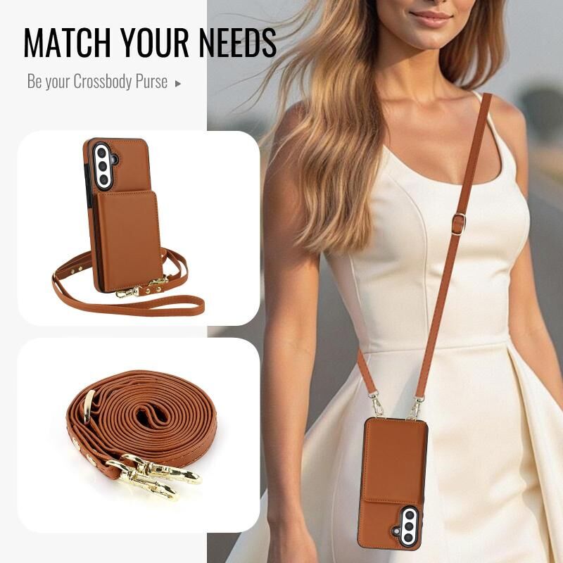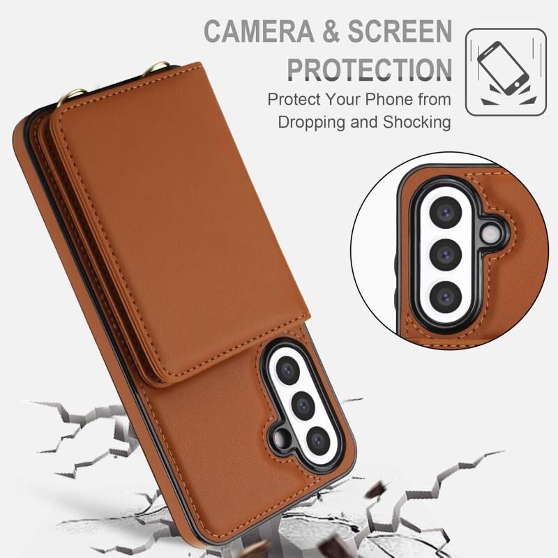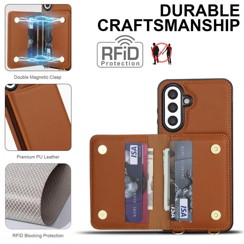 For Samsung Galaxy A36 5G Crossbody Dual-buckle Wallet RFID Back Leather Phone Case(Brown)