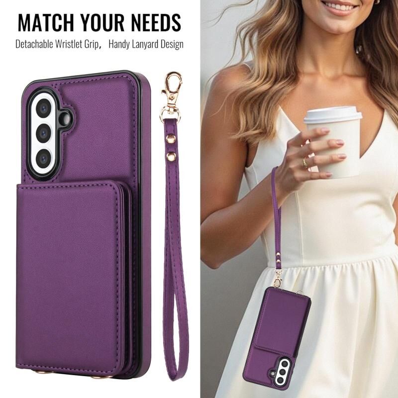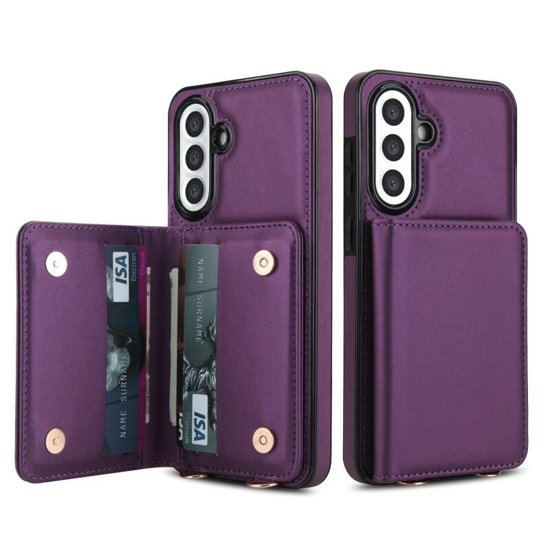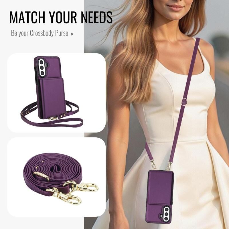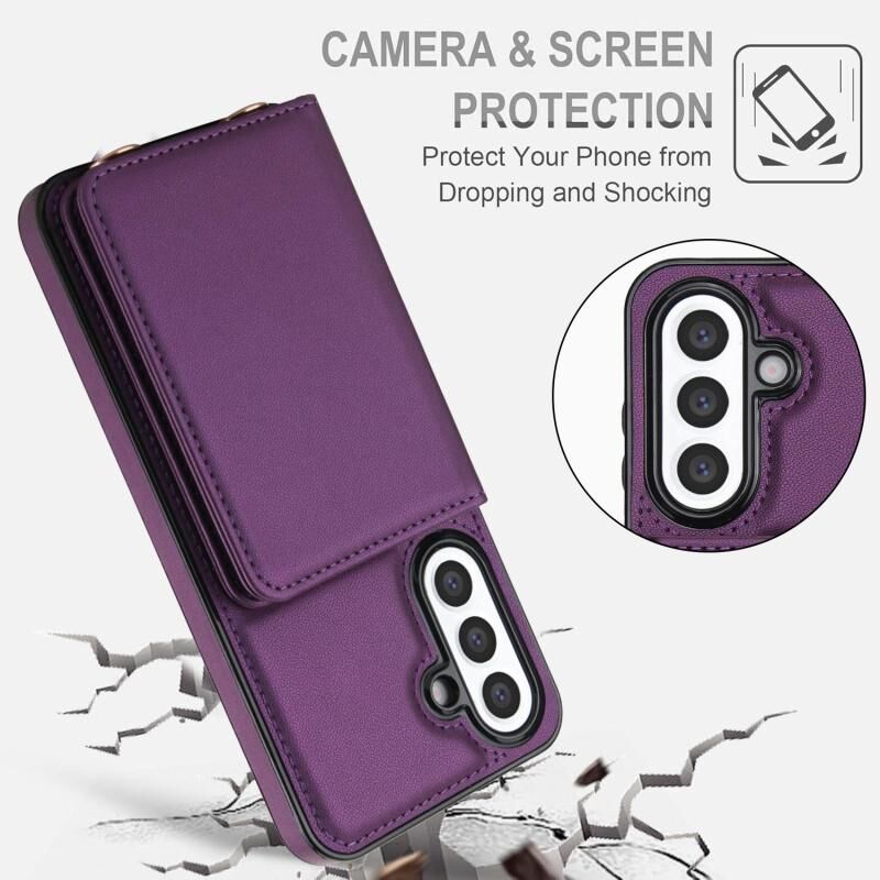 For Samsung Galaxy A36 5G Crossbody Dual-buckle Wallet RFID Back Leather Phone Case(Dark Purple)