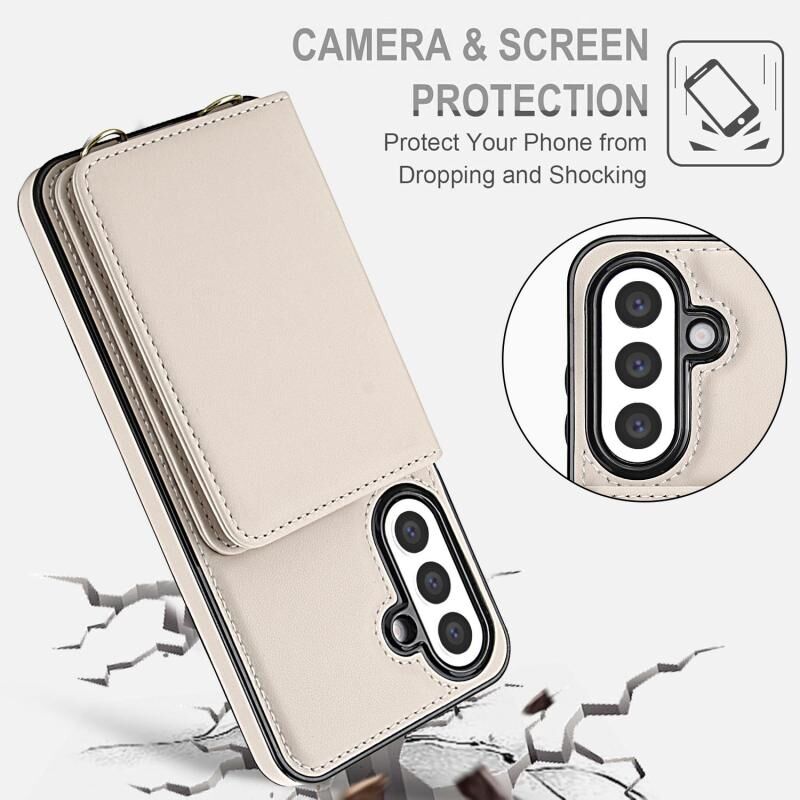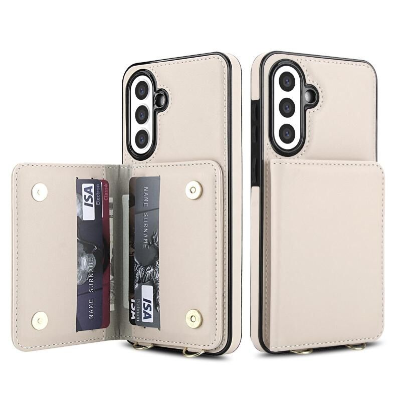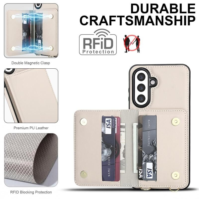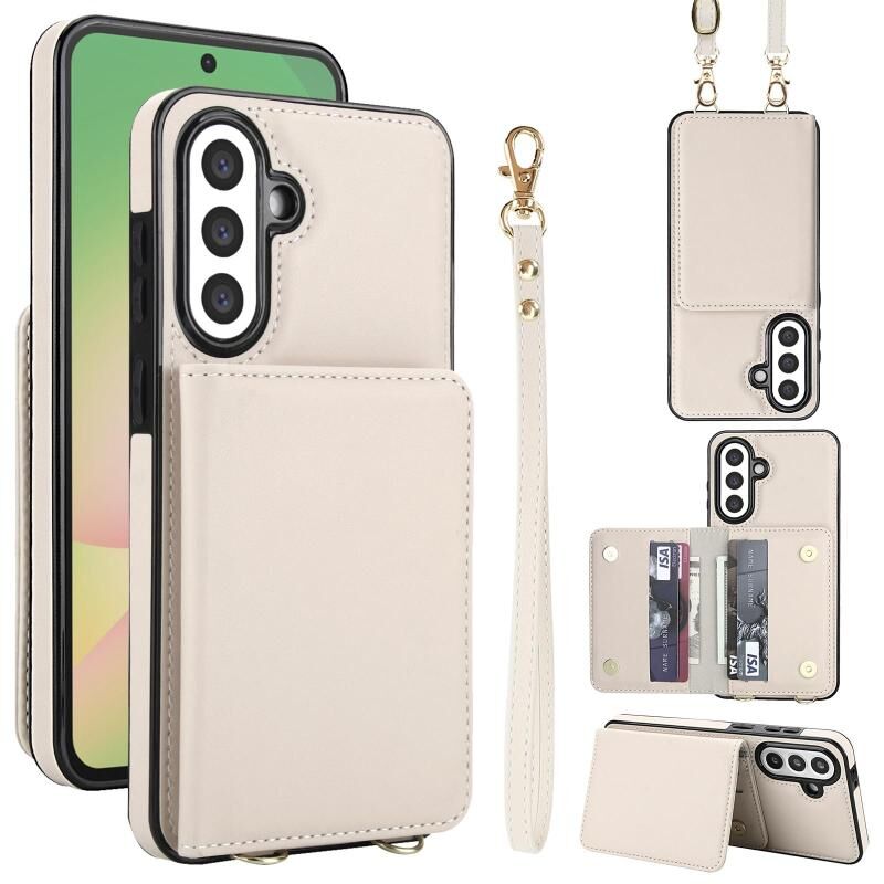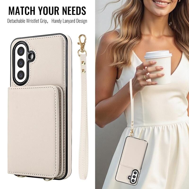 For Samsung Galaxy A36 5G Crossbody Dual-buckle Wallet RFID Back Leather Phone Case(White)