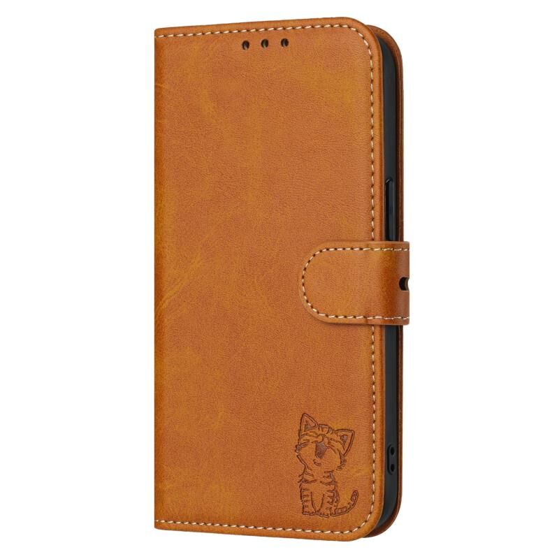 Θήκη τηλεφώνου Samsung Galaxy A36 5G, δερμάτινη, με ανάγλυφο σχέδιο χαρούμενης γάτας (Κόκκινη)
