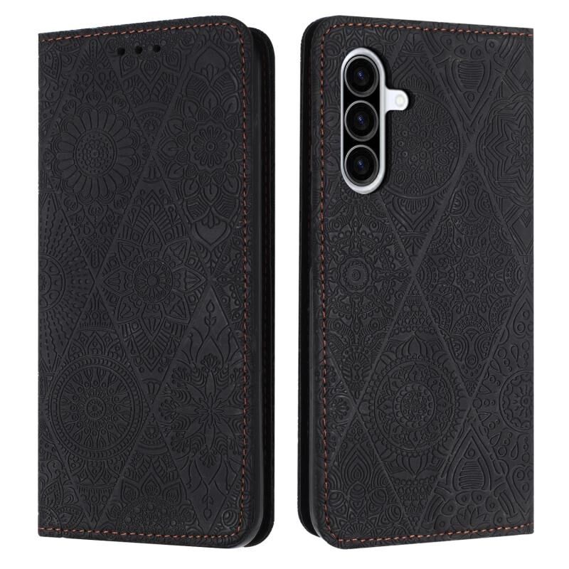 Θήκη τηλεφώνου Samsung Galaxy A36 5G από δέρμα με έθνικ ανάγλυφο και απορρόφηση (Μαύρο)