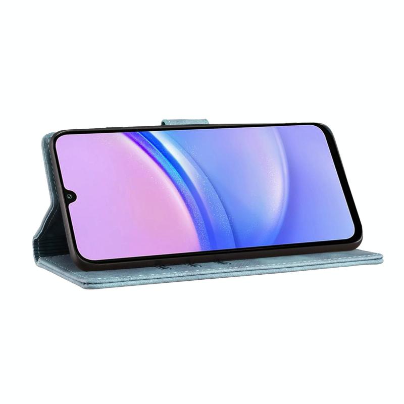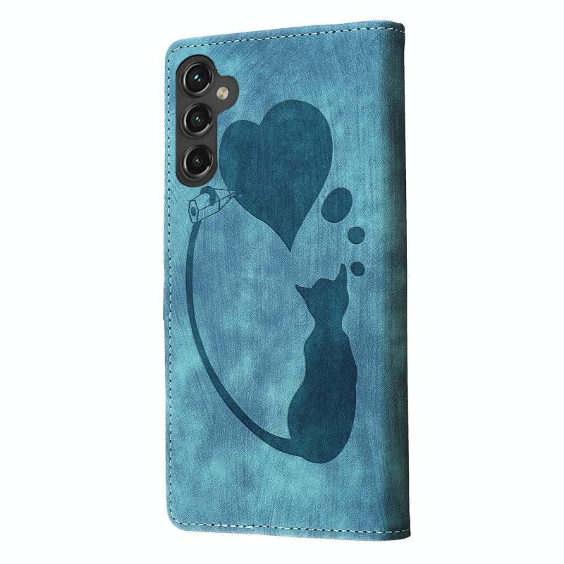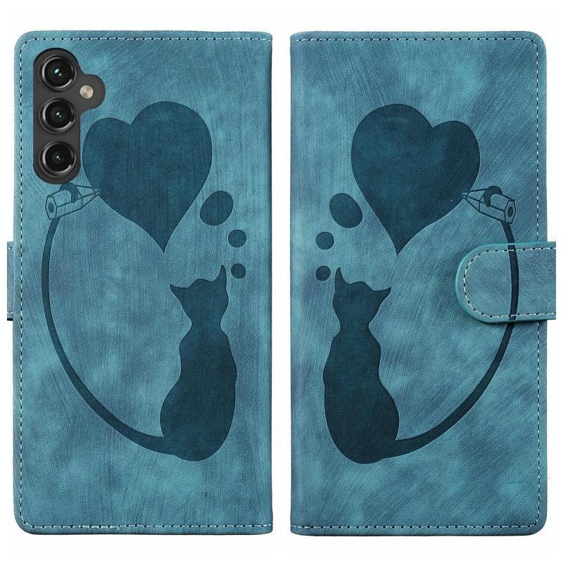 For Samsung Galaxy A36 5G Pen Heart Cat Embossed Leather Phone Case(Blue)