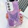 For Samsung Galaxy A36 5G Plating Glitter Lens Film Texture Butterfly Holder Wristband Phone Case(Purple Feather Yarn)