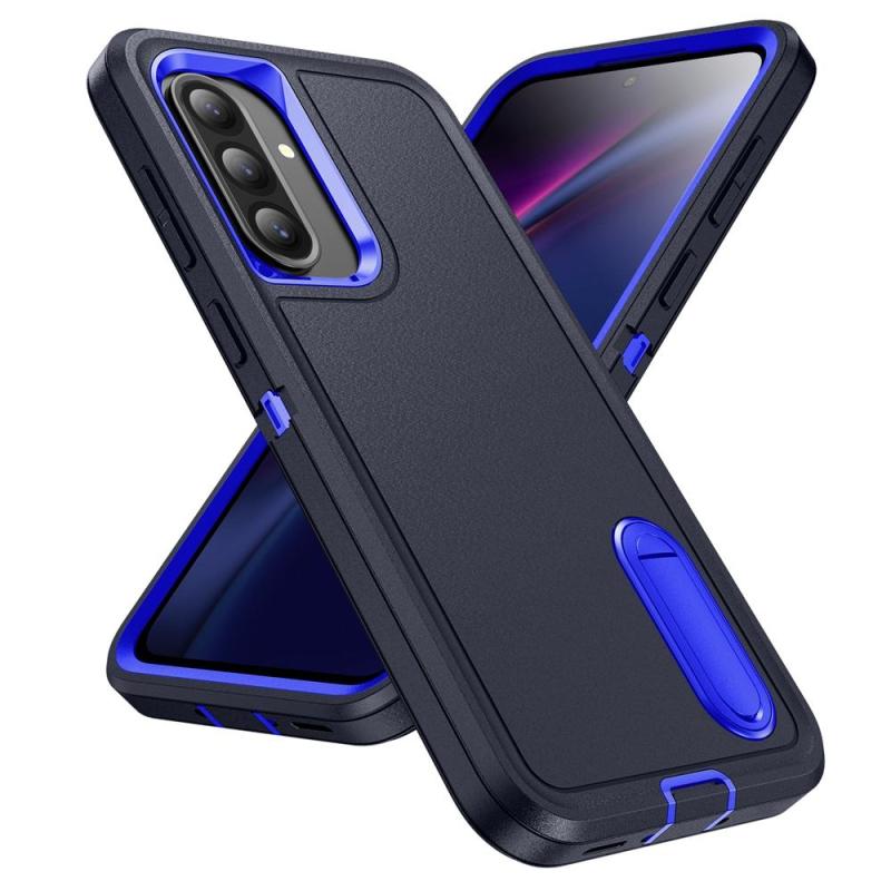 For Samsung Galaxy A36 5G Rugged PC Hybrid Silicone Phone Case with Holder(Dark Blue+Royal Blue)