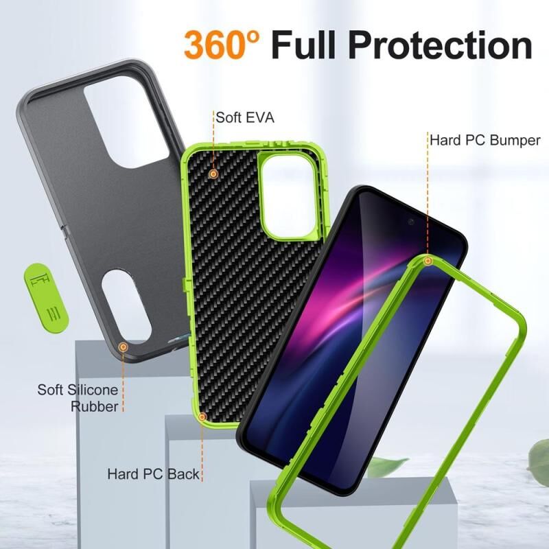 Θήκη τηλεφώνου για Samsung Galaxy A36 5G, ανθεκτική, υβριδική από PC και σιλικόνη με βάση στήριξης (Κόκκινο Ρόδι + Ανοιχτό Πράσινο)