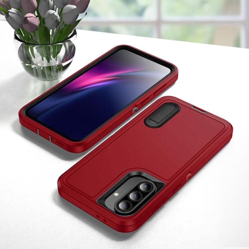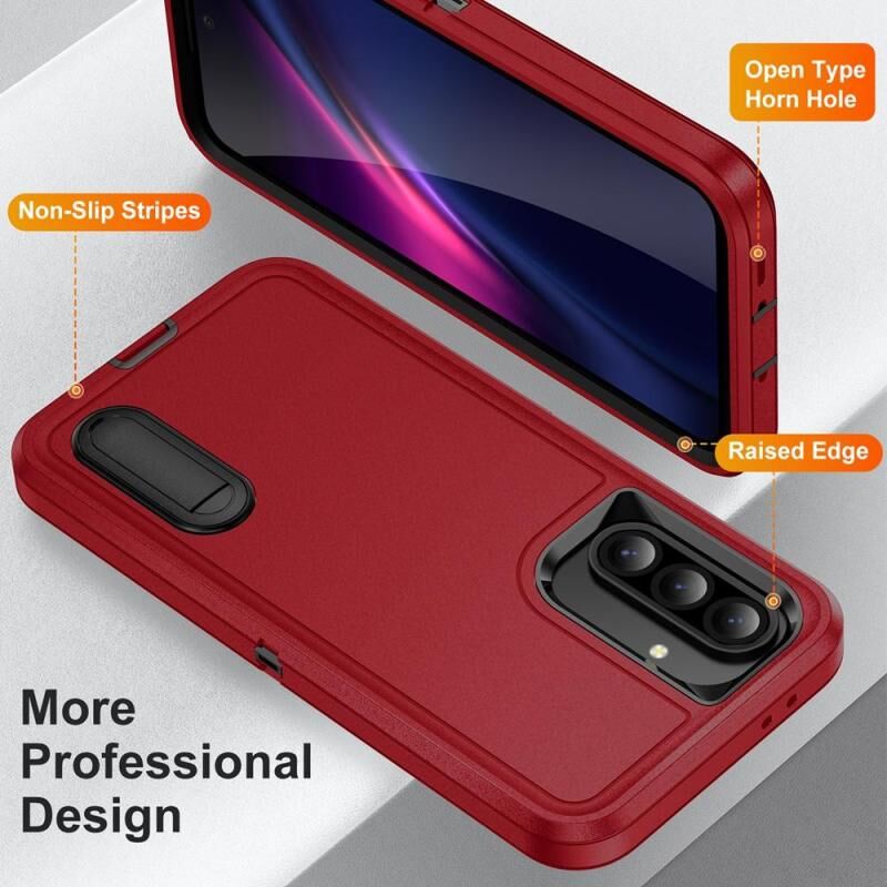 Θήκη τηλεφώνου για Samsung Galaxy A36 5G, ανθεκτική, υβριδική από PC και σιλικόνη με βάση στήριξης (Κόκκινο+Μαύρο)