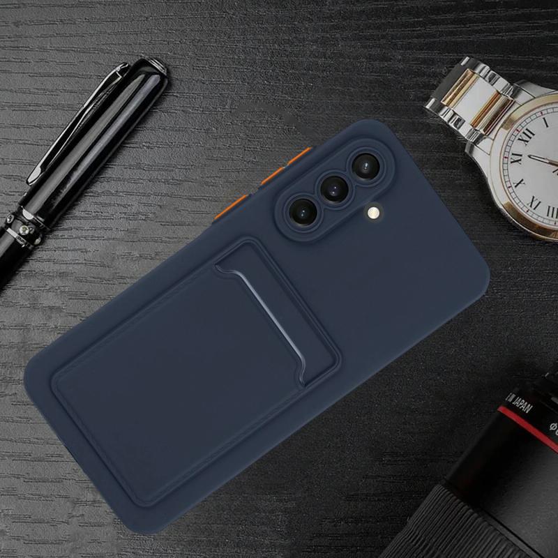 For Samsung Galaxy A36 5G Skin Feel Card Contrast Color Button TPU Phone Case(Dark Blue)