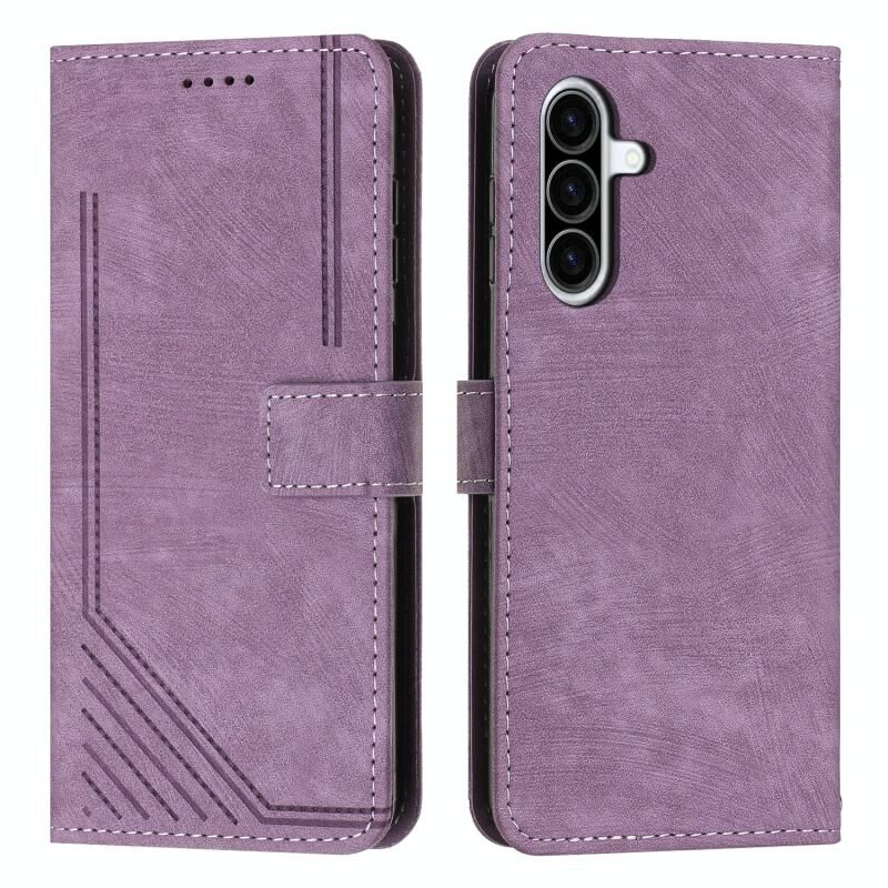 Για Samsung Galaxy A36 5G δέρμα αίσθηση λωρίδα μοτίβο δερμάτινη θήκη τηλεφώνου με μακρύ κορδόνι (μωβ)