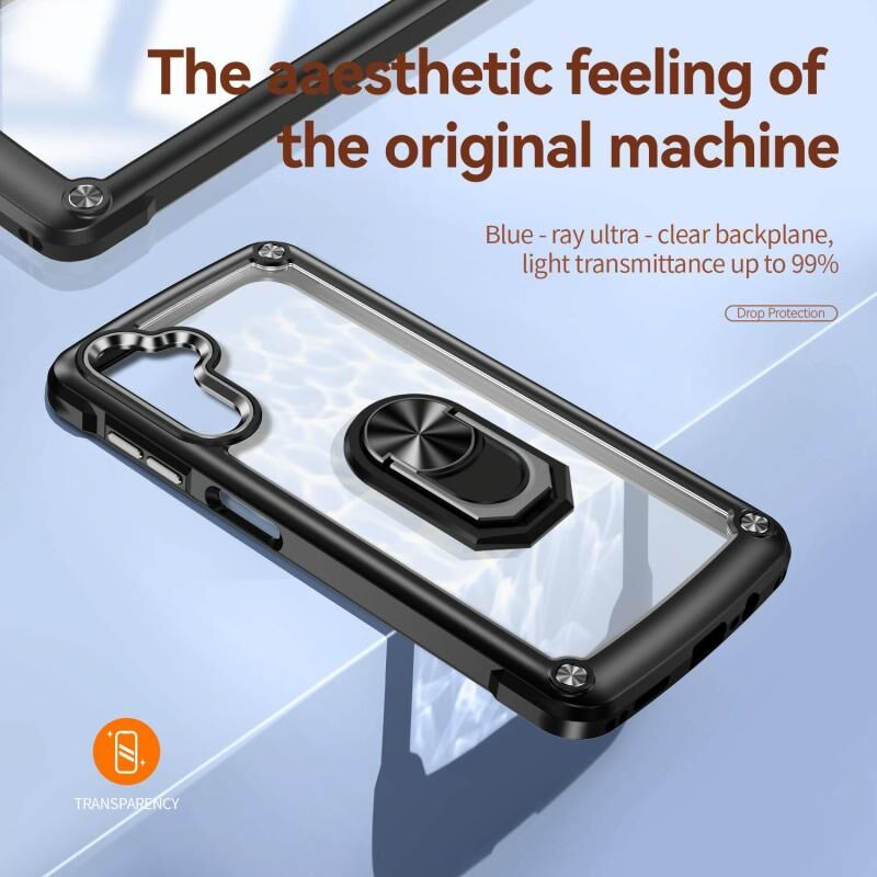 Θήκη κινητού τηλεφώνου για Samsung Galaxy A36 5G από TPU + PC με προστασία φακού και δακτύλιο στήριξης (Μαύρο)