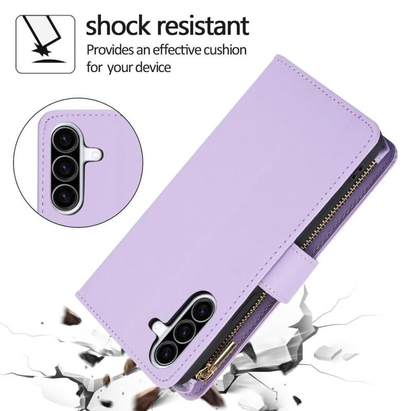 For Samsung Galaxy A36 5G YM016 Rhombic Zipper Card Wallet Leather Phone Case with Lanyard(Light Purple)