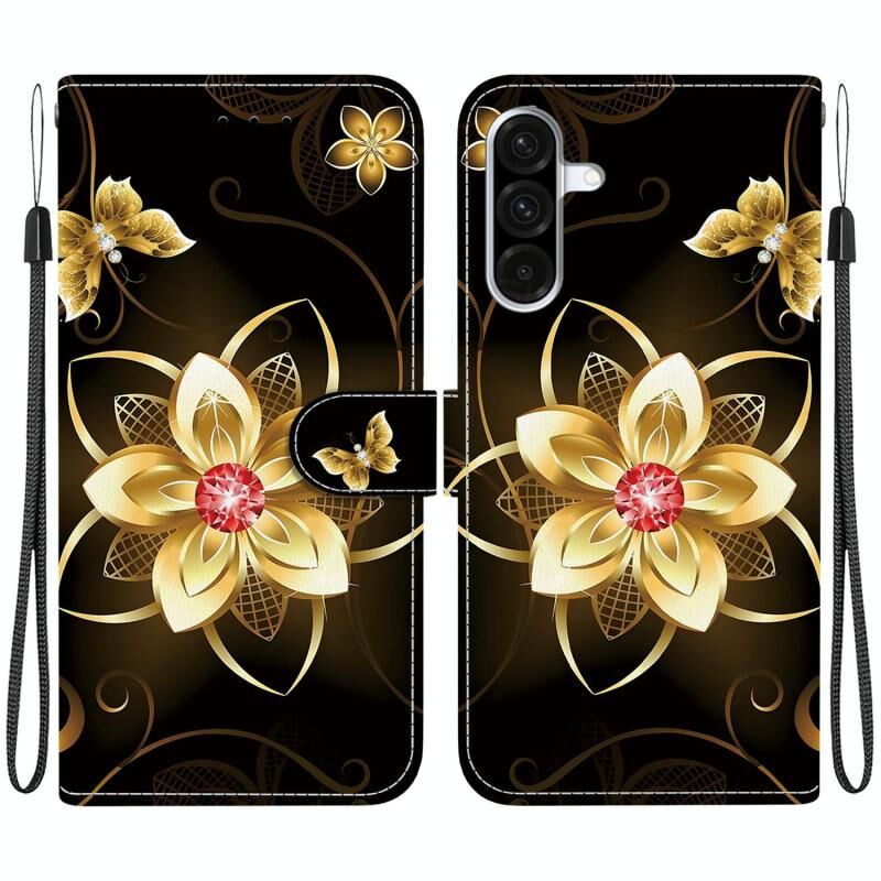 Θήκη τηλεφώνου από δέρμα με πολύχρωμο σχέδιο κρυστάλλινης υφής για Samsung Galaxy A36 / A56 5G (Χρυσά Φτερά Πεταλούδας)