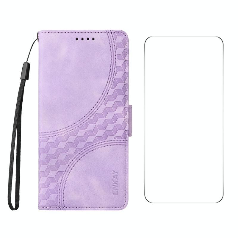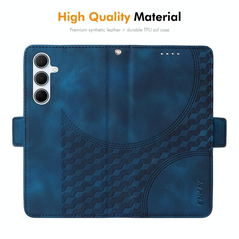 Θήκη κινητού τηλεφώνου ENKAY με ανάγλυφο ρόμβο και αστέρια από δέρμα για Samsung Galaxy A36 / A56 με προστατευτική μεμβράνη οθόνης (Μπλε) (ENKAY)