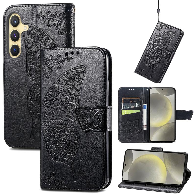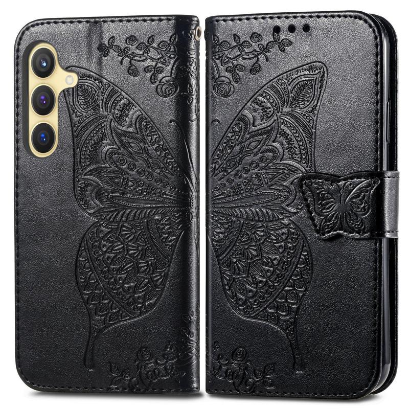 For Samsung Galaxy A36 Butterfly Love Flower Embossed Leather Phone Case(Black)